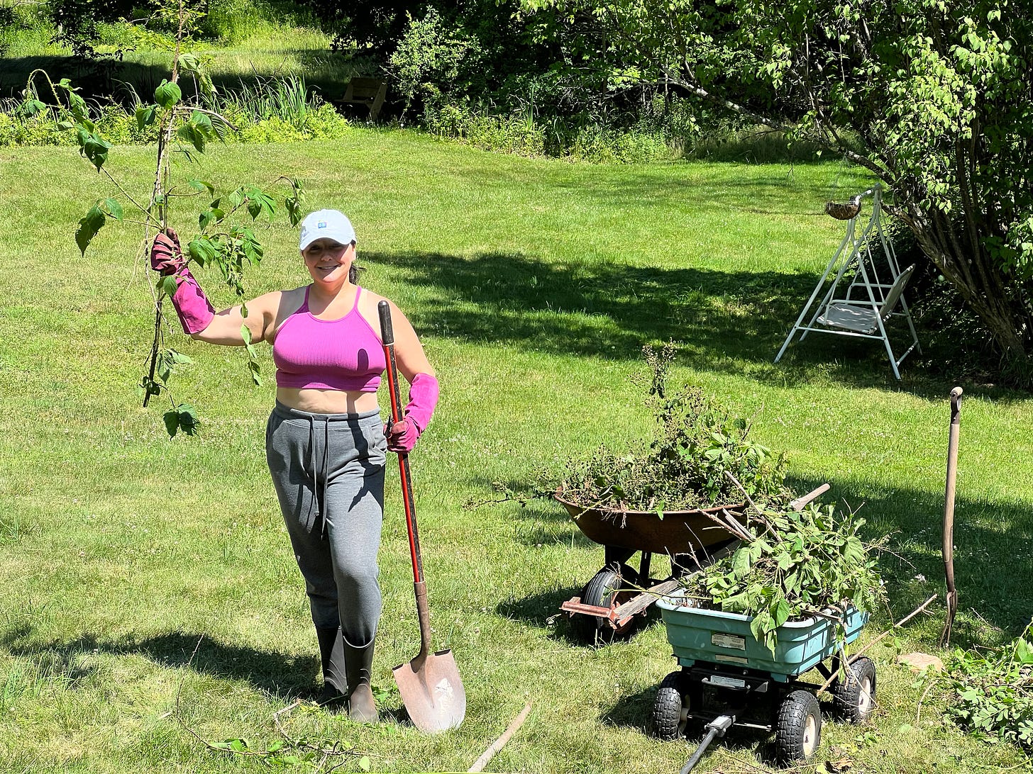 In the thicket, I felt free to be my unencumbered self, to clear away space to breathe. I felt wild as I tamed back the overgrown ripe berries and sharp thorns that scratched red lines across my arms, clearing a new chapter for the garden and myself.